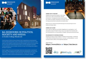 Information leaflet:  BA (HONOURS) IN POLITICS, SOCIETY AND MEDIA at Dublin College Blackrock .